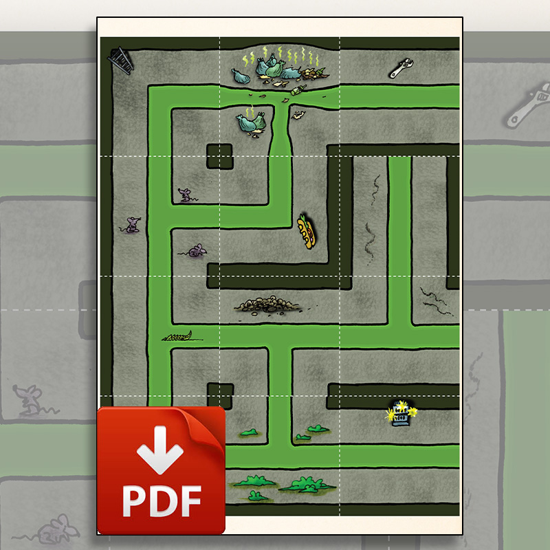 Pour la mission “Panique dans les Egouts”, nous proposons un système de “tuiles” à découper pour une avancée à tâtons dans les égouts… Frissons garantis !