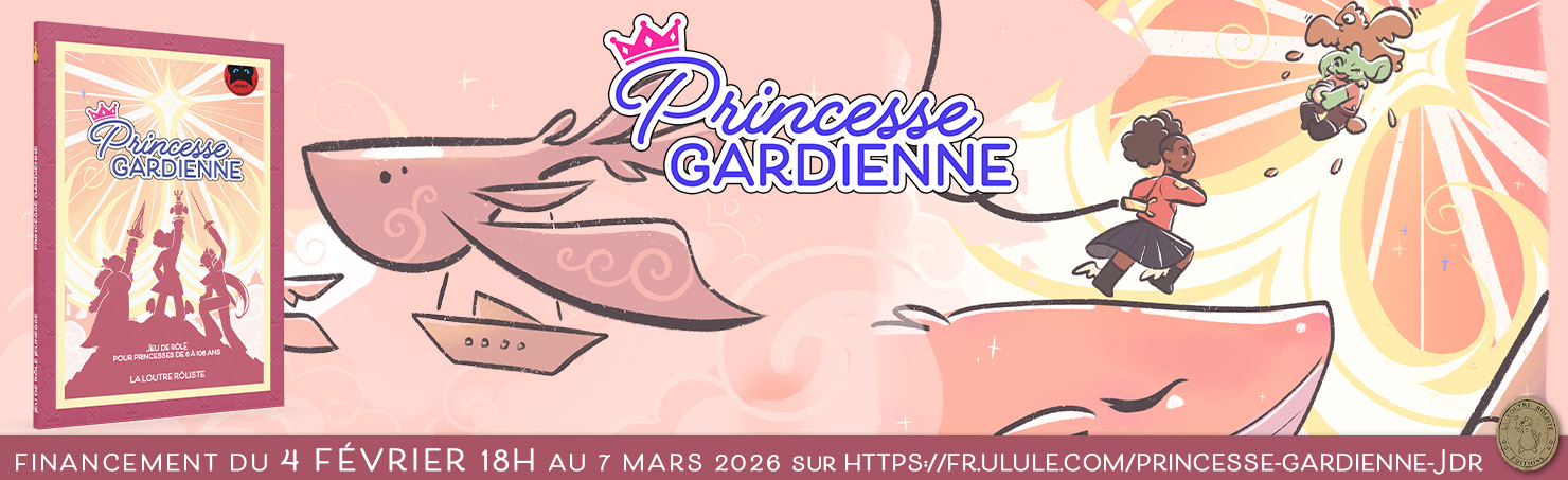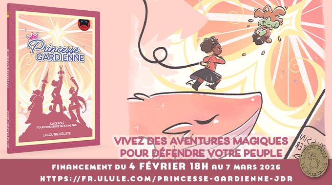Princesse Gardienne est un jeu de rôle jeunesse et familial à partir de 2 joueurs ! Conçu pour être accessible aux jeunes joueurs à partir de 6 ans, il régalera aussi bien les plus jeunes que les plus grands jusqu’à 106 ans. Adultes, ados ou enfants, ce jeu de rôle est parfait pour initier à ce loisir avec des parties courtes, complètes et amusantes!