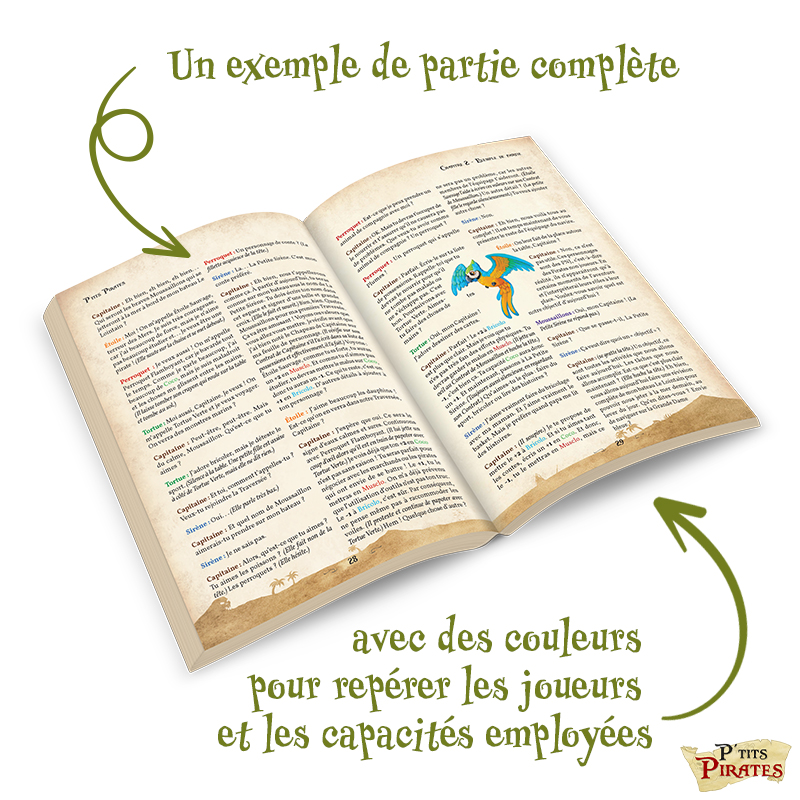 P’TITS PIRATES contient tout le nécessaire pour vivre de belles aventures, que l’on soit Capitaine ou Moussaillon ! La durée moyenne d’une partie étant de 45min/1h, ce jeu propose un moment de partage authentique en famille, entre amis et également en centre de loisir, médiathèque, librairie, en classe… bref tout lieu où le jeu, la culture et l’imaginaire sont omniprésents. News : P’TITS PIRATES, jeu de rôle pour enfants