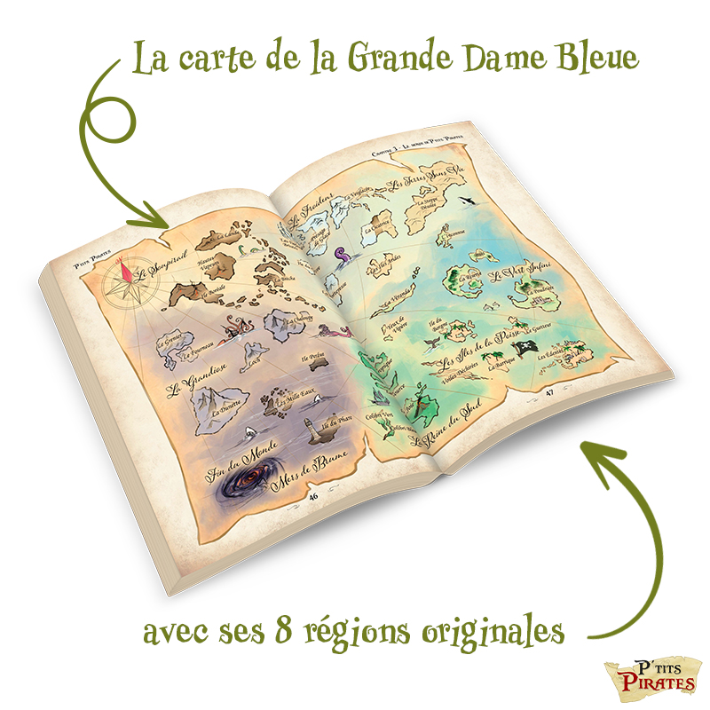 Avec P’TITS PIRATES, les Moussaillons vogueront d’aventure en aventure sur les eaux de la Grande Dame Bleue, exploreront les huit fabuleuses régions qui la composent et découvriront la vie de pirates ! Sous les ordres de leur Capitaine, ils navigueront là où le vent et les cartes aux trésors les guideront. Et avec un peu de chance et de témérité, peut-être découvriront-ils l’un des huit trésors légendaires !