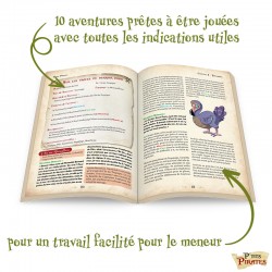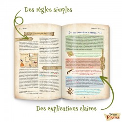 Le livre de base de P'TITS PIRATES contient tout le nécessaire pour vivre de belles aventures, que l’on soit Capitaine ou Moussaillon ! La durée moyenne d’une partie étant de 45min/1h, ce jeu propose un moment de partage authentique en famille, entre amis et également en centre de loisir, médiathèque, librairie, en classe… bref tout lieu où le jeu, la culture et l’imaginaire sont omniprésents.